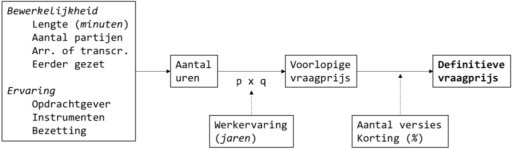 Bovenstaande figuur is een geactualiseerde en schematische weergave voor de totstandkoming van de vraagprijzen van een arrangeur. Het proces is simpel: