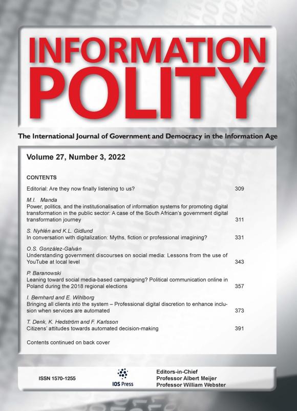 Vandaag werd een artikel van mijn hand gepubliceerd in het internationale tijdschrift Information Polity. Je vindt het artikel (open access) via deze link.