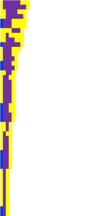 Toen ik al deze sequenties (want dat zijn het) eenmaal in beeld had, ging ik verder met het vaststellen van welke groepen arrangementen (‘clusters’) veel gelijkenis met elkaar vertoonden.
