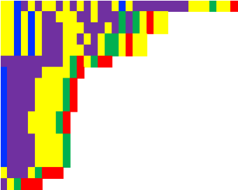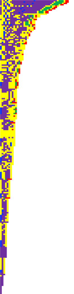 Er zijn allerlei statistische methoden om vast te stellen in hoeverre clusters op elkaar mogen lijken, zoals door de Hamming distance te bepalen, of met behulp van optimal matching (zie bijvoorbeeld dit artikel). Dat vond ik voor deze huis-tuin-en-keukencontext met 150 observaties wat ver strekken, dus ik heb de arrangeeropdrachten meer ‘op zicht’ gerangschikt en gegroepeerd.